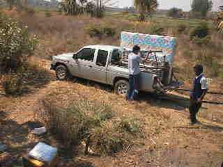 買い込んだ荷物を運び降ろして