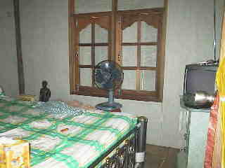 寝室にベッド TV 扇風機を配置