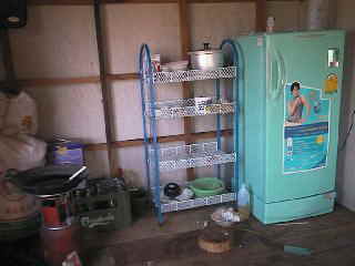 ガス器具と食器棚と冷蔵庫を置く